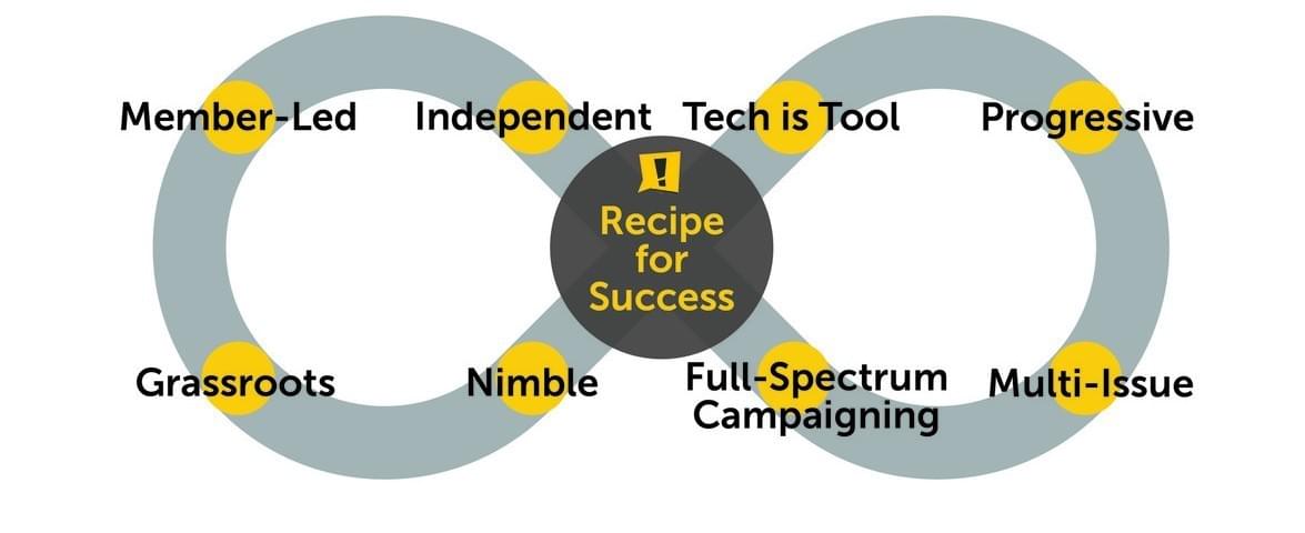 Our core service to our members is to offer them good strategy and coordinated action to turn each of their many resources into social change. This includes their voice, social networks, money, creativity, reputation, physical presence, vote, and much more.